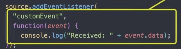 - event 유형에 데이터를 넣고, 어떻게 반응할지를 eventSource 객체 등에 등록된 리스너에 명시 가능