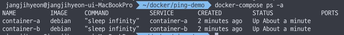 - 명령어 : docker-compose ps -a